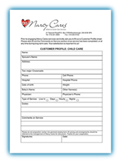 Our Customer Profile Sheets are available here as Pdf file downloads. Please print one off, fill in the needed information and deliver to Marcy Cares prior to initiating our services.